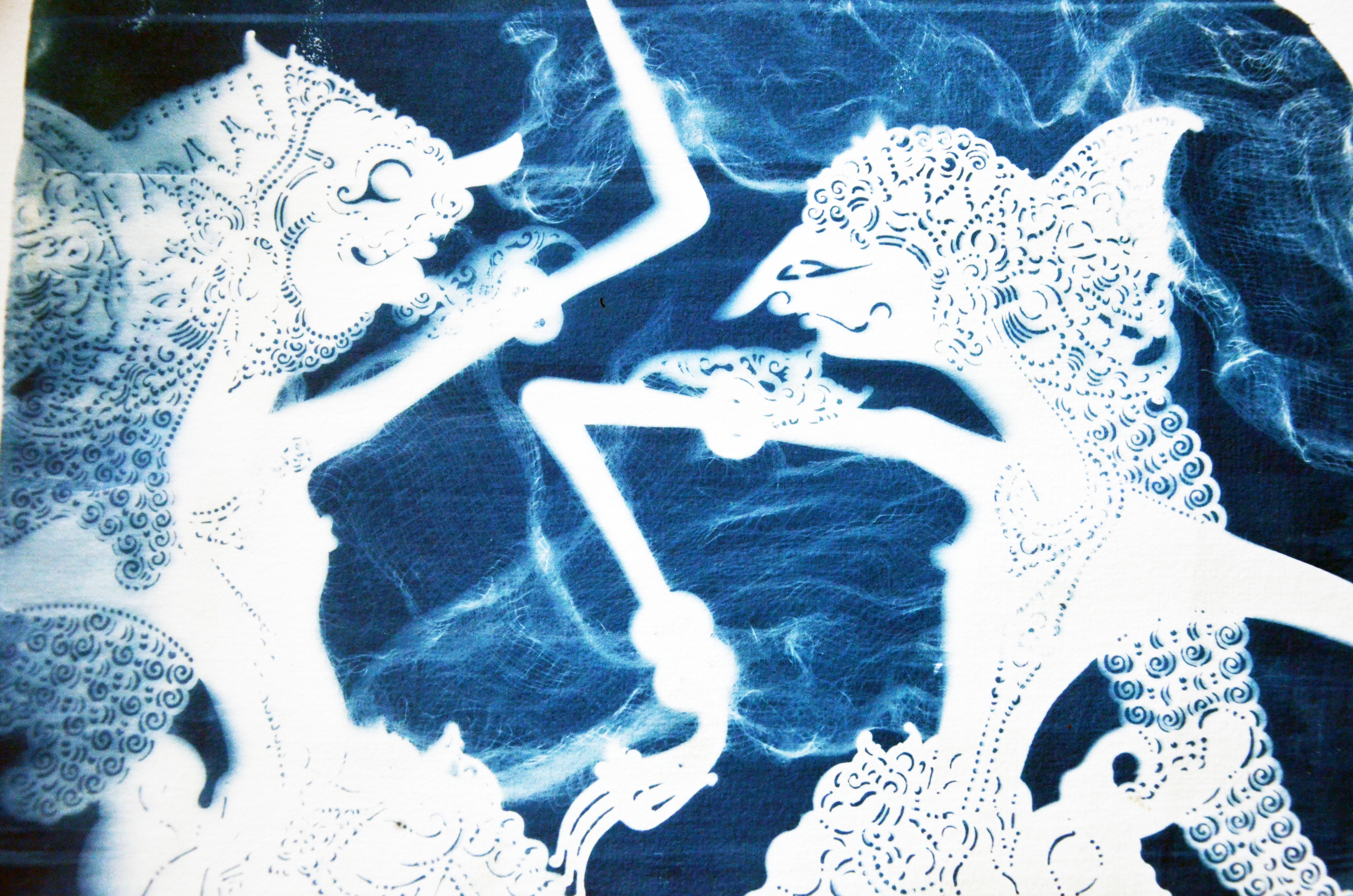 The wayang kulit is a play that makes use of two-dimensional puppets cut out from leather (kulit) in order to throw shadows (wayang) against a white screen.